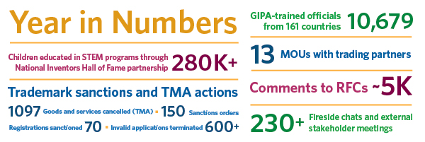 What’s clear from conversations throughout this past year is that, more than ever, our nation needs the progress and growth that IP protections provide. We need a robust and reliable IP ecosystem that cultivates an innovation mindset and catalyzes inclusive innovation and entrepreneurialism—one that drives economic prosperity, U.S. competitiveness, supply chain resiliency, national security, and creative world problem- solving. We must continue to lead, and work closely with our allies, to realize our potential. I’ve done a lot of listening throughout the past year, from my 200+ external stakeholder meetings to listening sessions with 1500+ employees, and I’m excited to make 2023 (and beyond) my year of action.